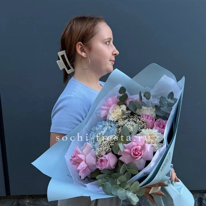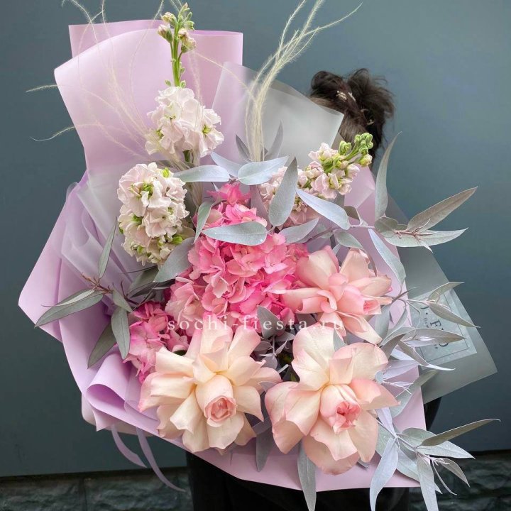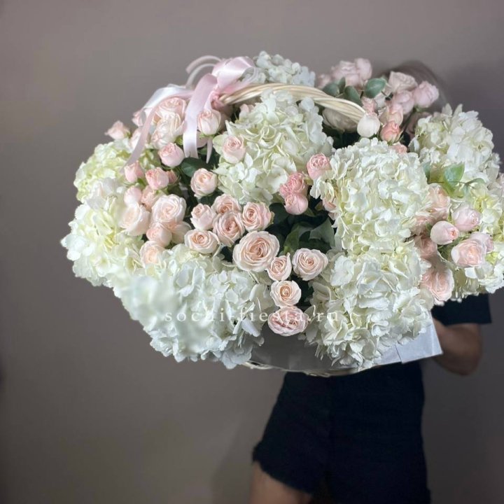 Букет гортензии и роз "Тиамо"