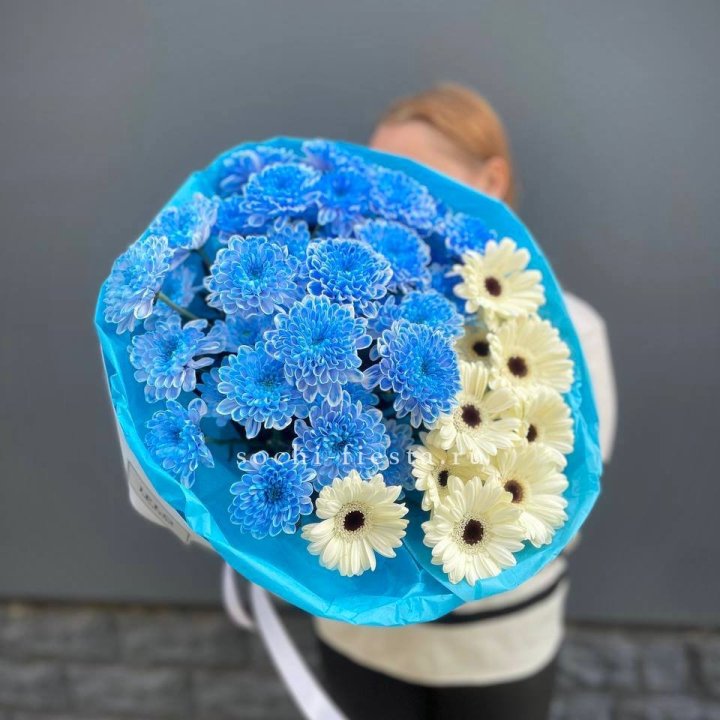Букет хризантем "Голубая снежинка"