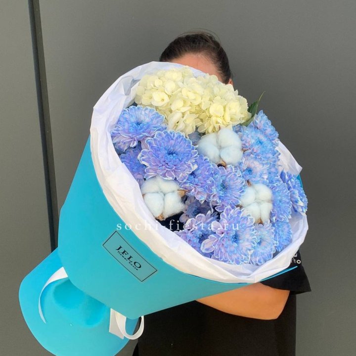 Букет нежно-голубых хризантем