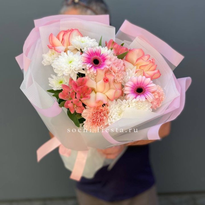 Букет бело-розовых хризантем