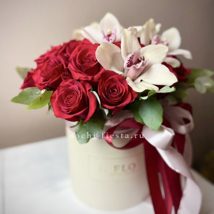 Розы и орхидеи в боксе