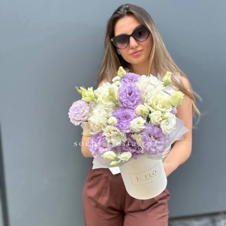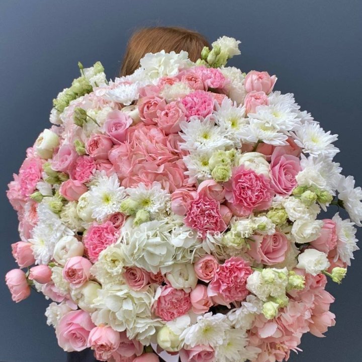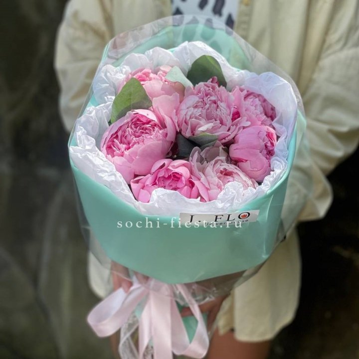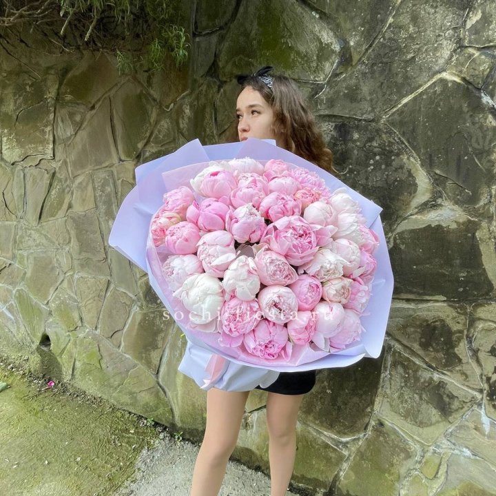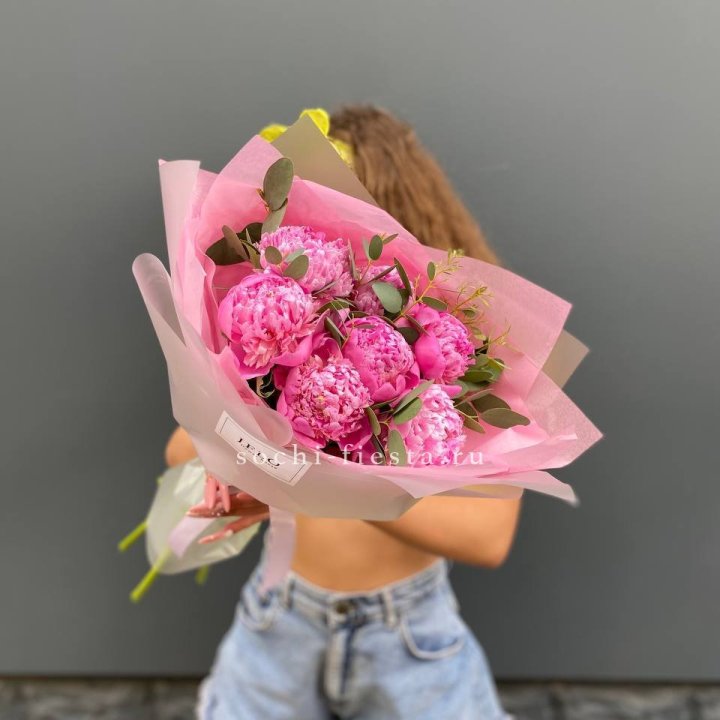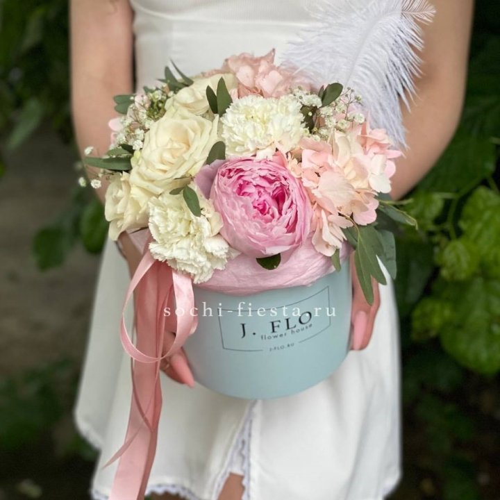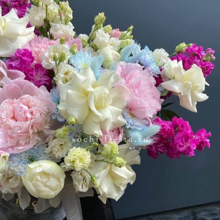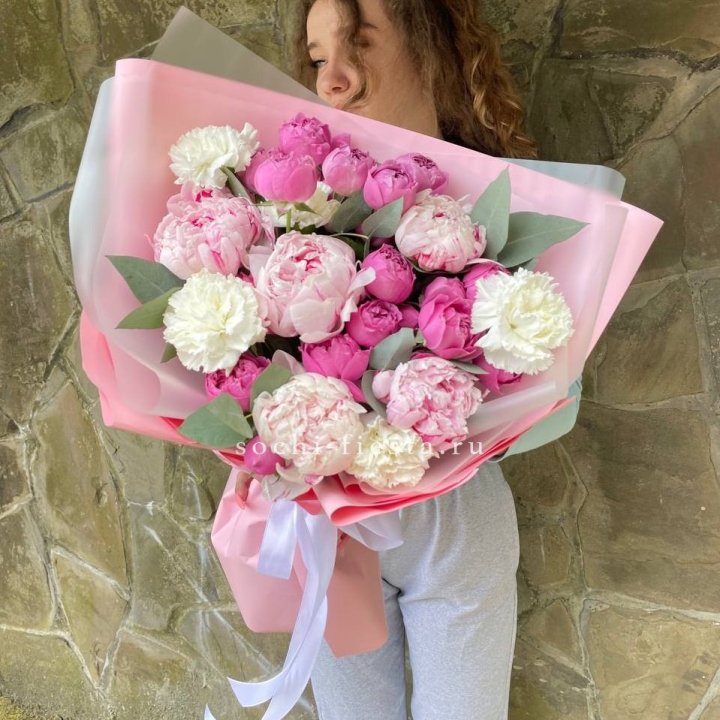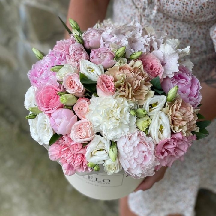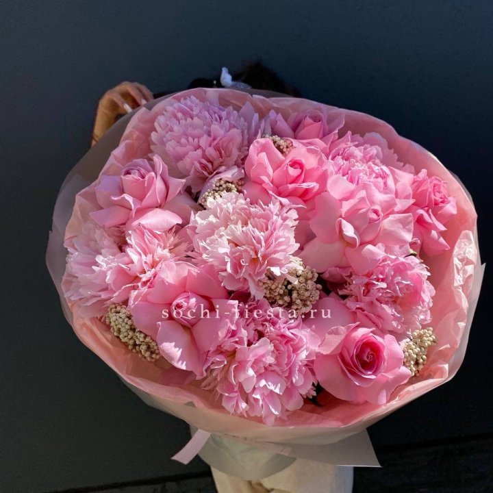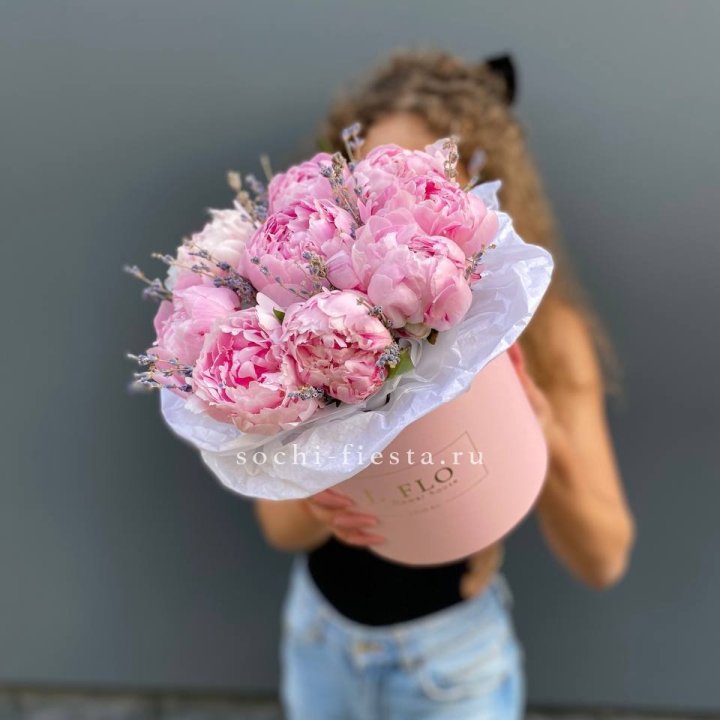 Цветочная корзина из пионов и пионовидных роз "Перфекте"