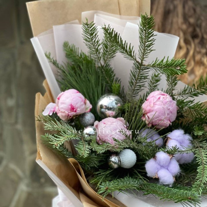 Новогодний букет с пионами