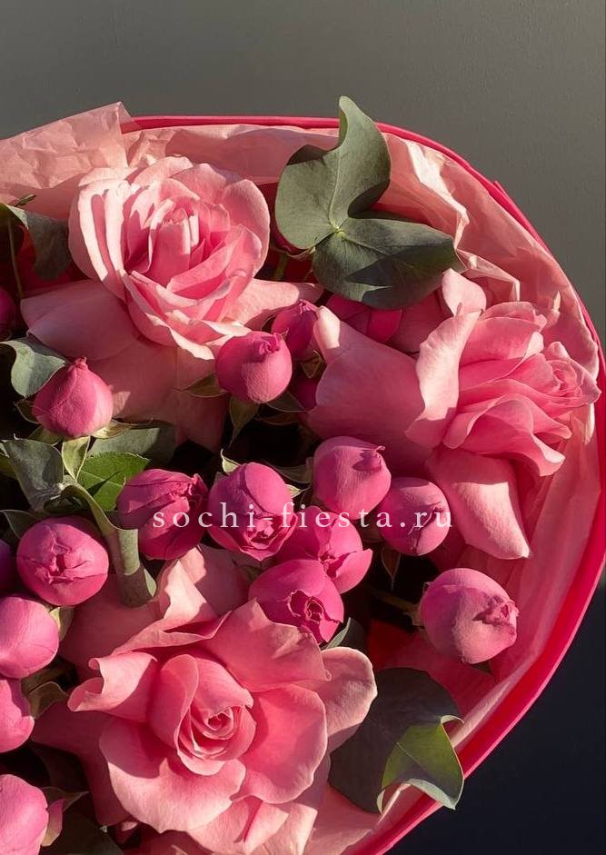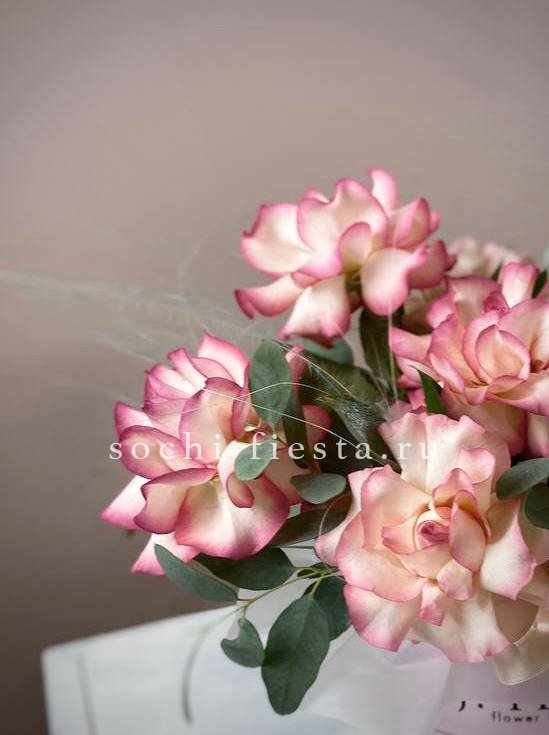 Одиннадцать кустовых роз с густыми многолепестковыми бутонами в нежно-розовой гамме. Каждая ветка раскрывается несколькими головками, создавая пышную объемную форму. Для тех, кто любит выразительные букеты с характером.