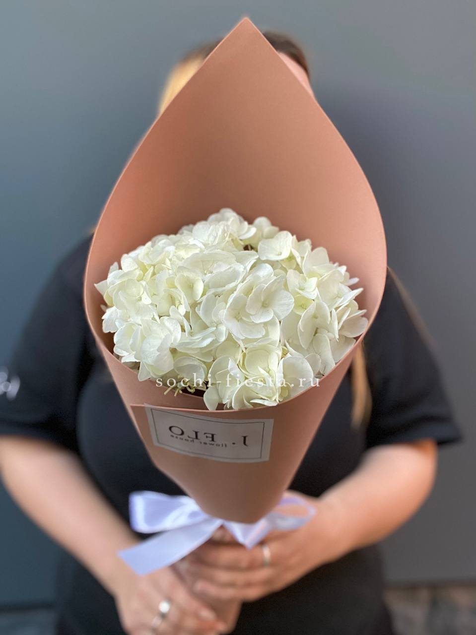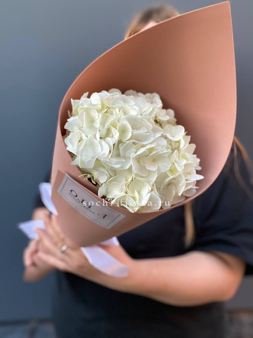 гортензия - 5 шт., лента, дизайнерская упаковка.