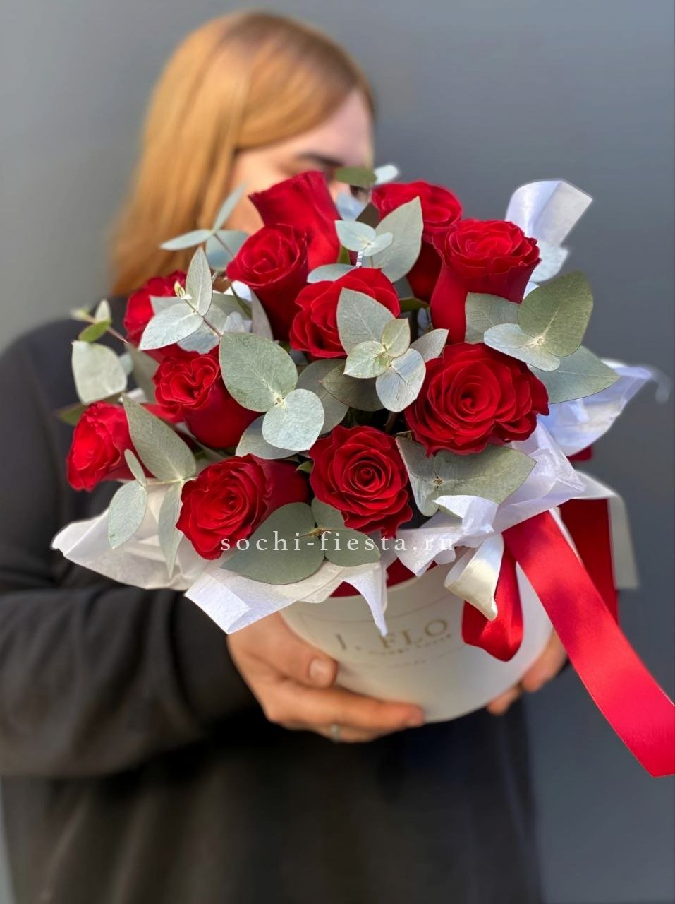 вывернутые розы - 11 шт., эвкалипт - 1шт., лента, авторская упаковка.