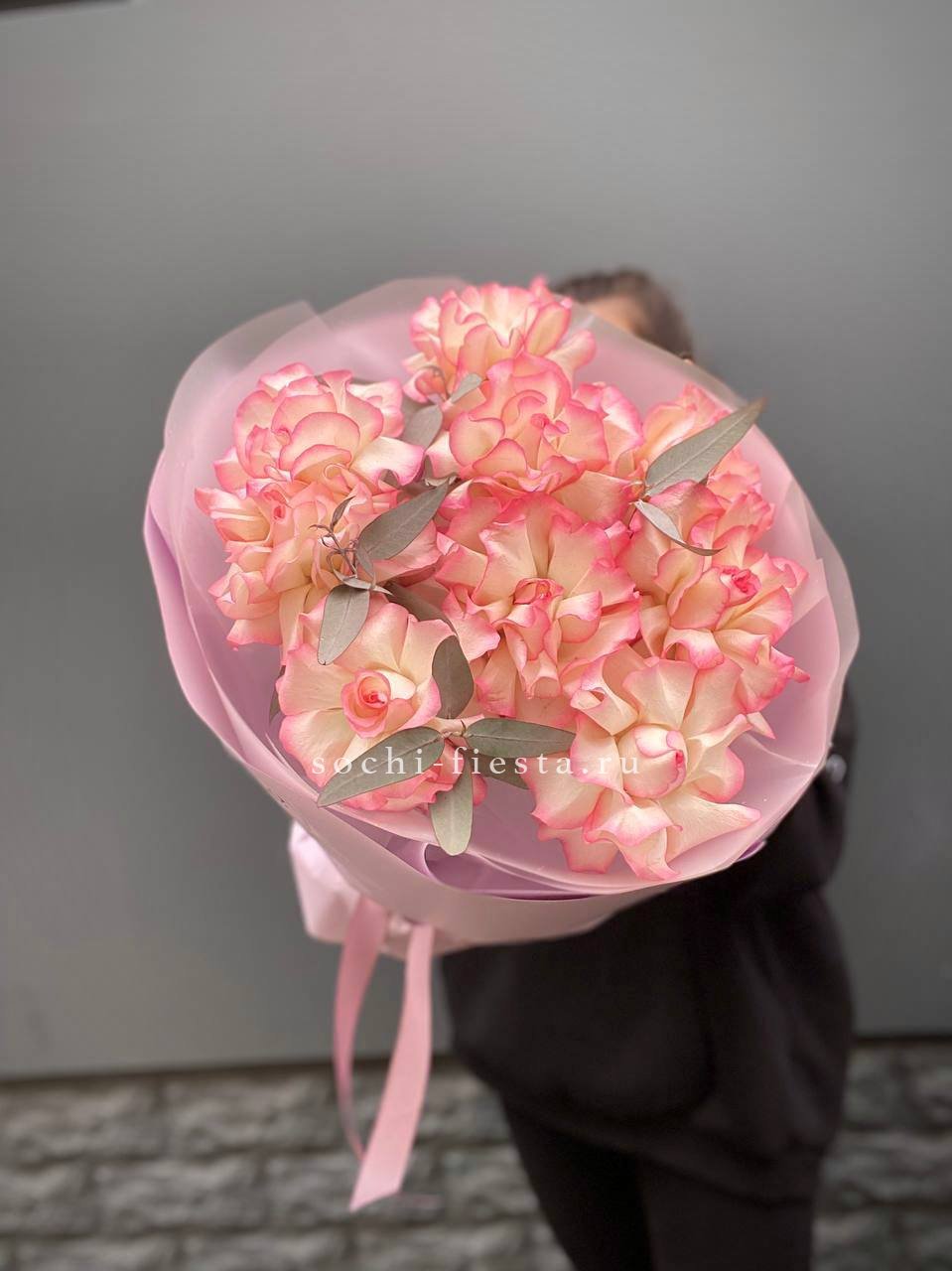 вывернутые розы, эвкалипт, лента, авторская упаковка.