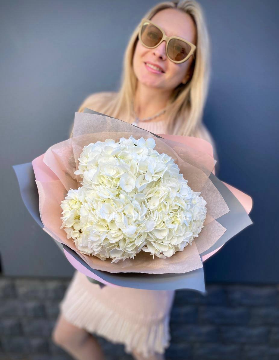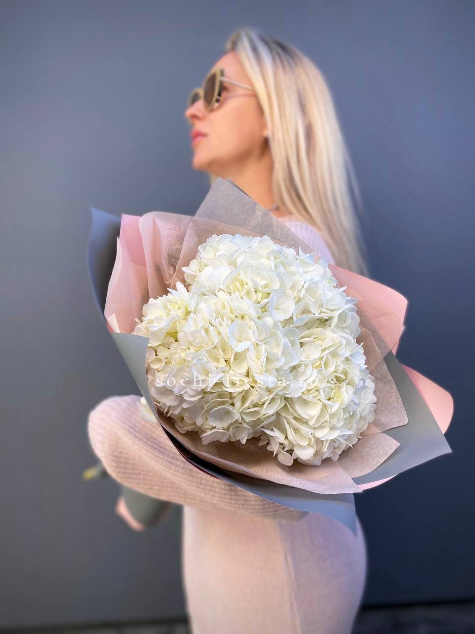 Для заказа товара "Букет из трёх белых гортензий" с доставкой в Екатеринбурге нажмите в корзину