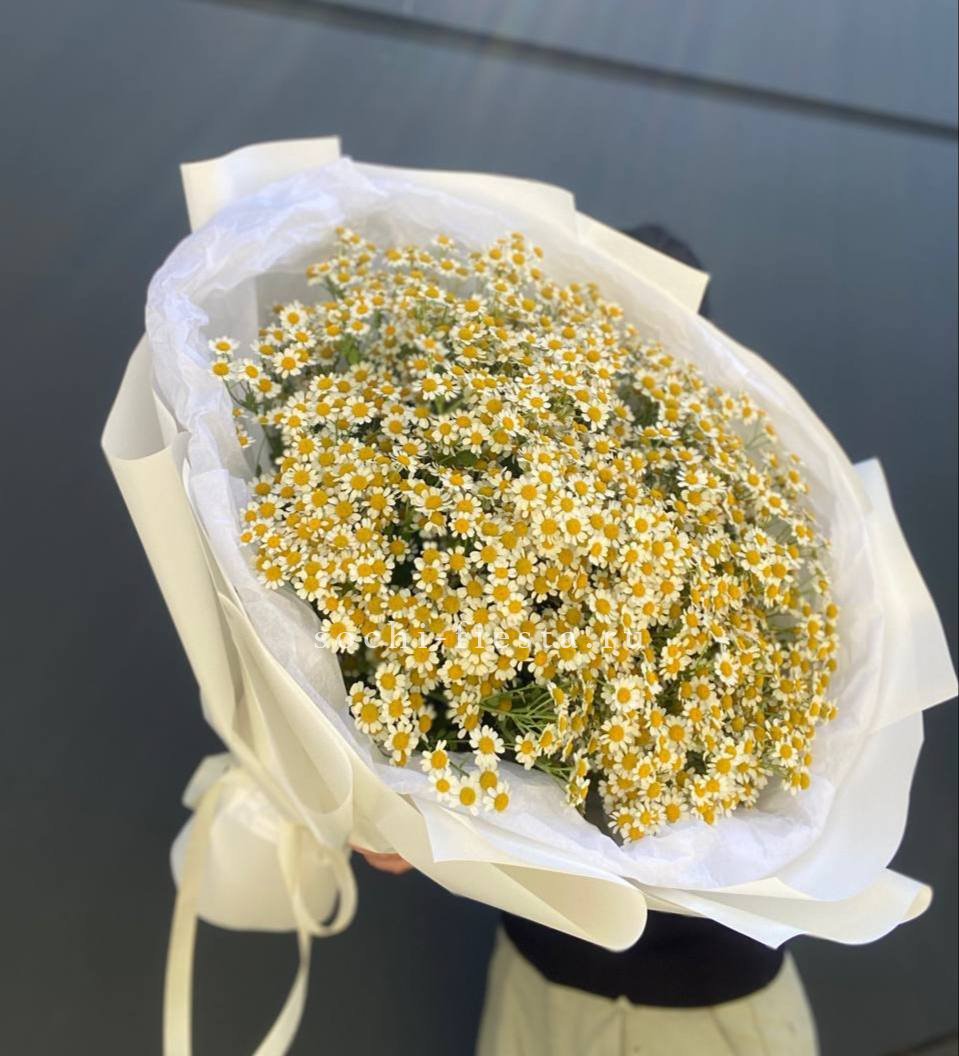 ромашки (танацетум камилла) - 25 веток, лента, упаковка.