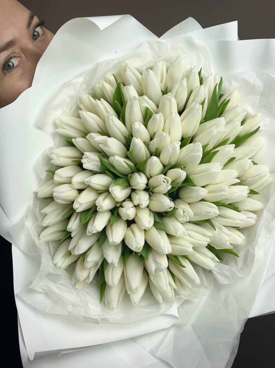 Для заказа товара "101 белый тюльпан №2" с доставкой в Екатеринбурге нажмите в корзину