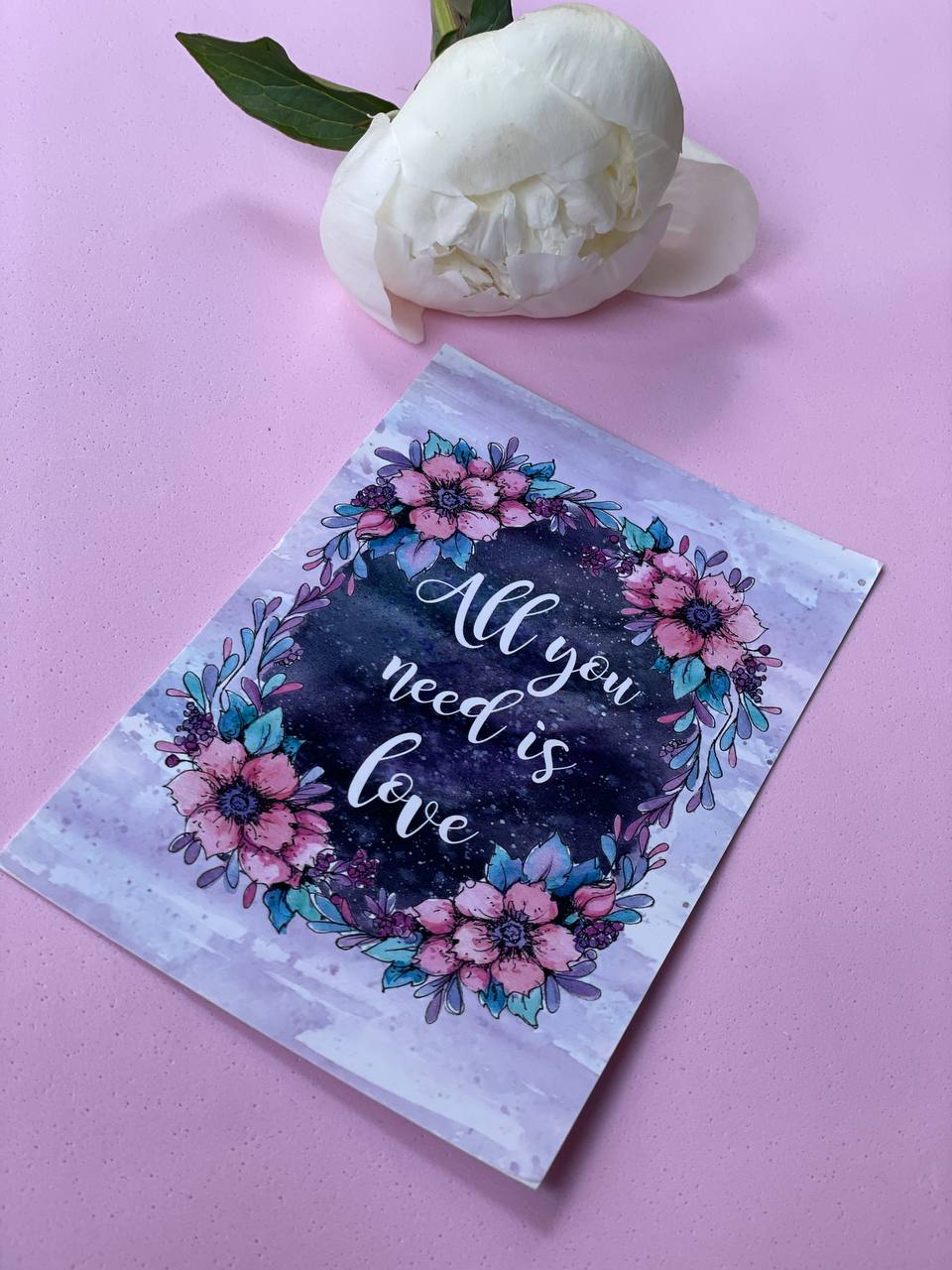 Открытка к букету "Все, что тебе нужно - это любовь"