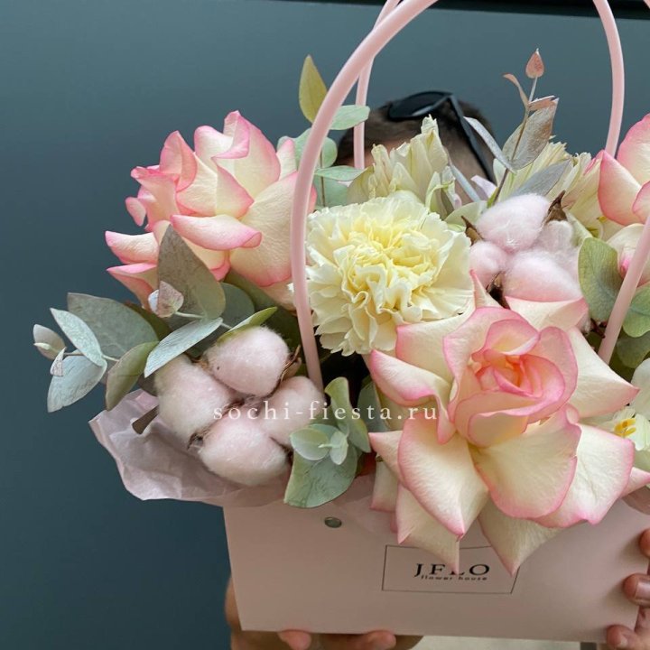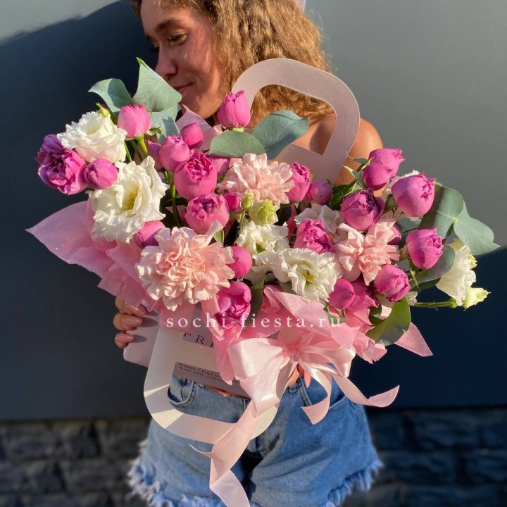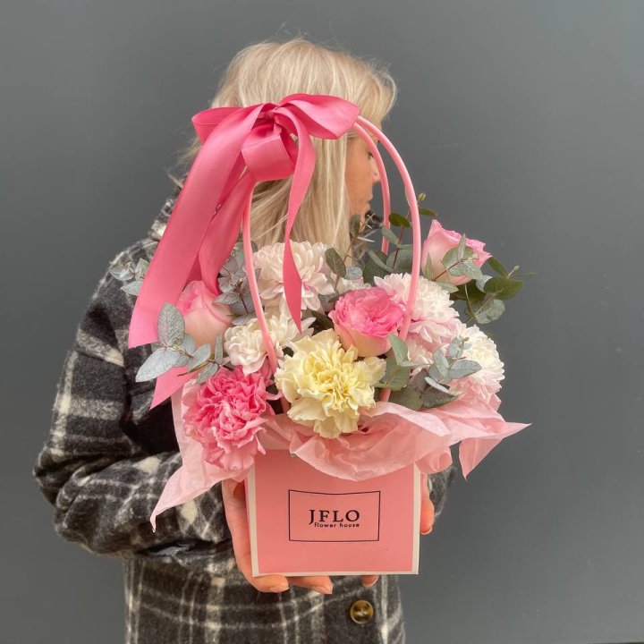 Размер выбирается по масштабу повода. Коллеге — M или L. Юбилей родителей — XL. Выписка из роддома — L в пудровой палитре. Корпоративный юбилей — XXL. Индустриальный профессиональный праздник — корзина-коробка в корпоративной палитре.