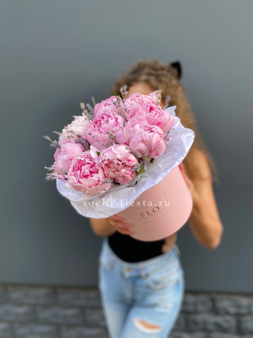 9 пионов, лаванда, цилиндр D16.