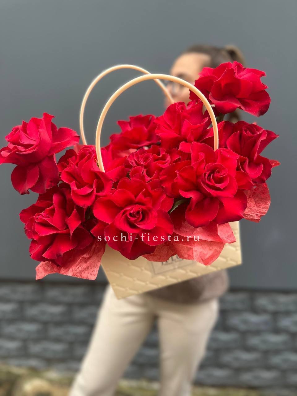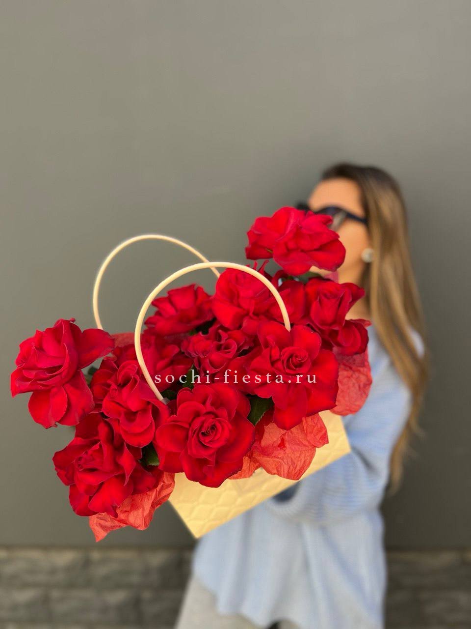 красные розы в сумочке.