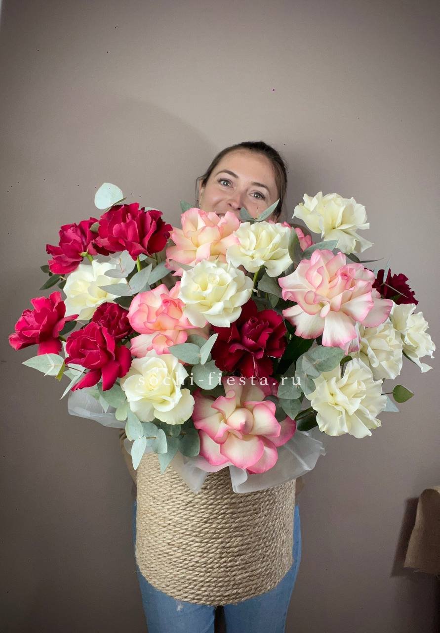 Для заказа товара "35 французских роз микс в джутовом боксе" с доставкой в Екатеринбурге нажмите в корзину