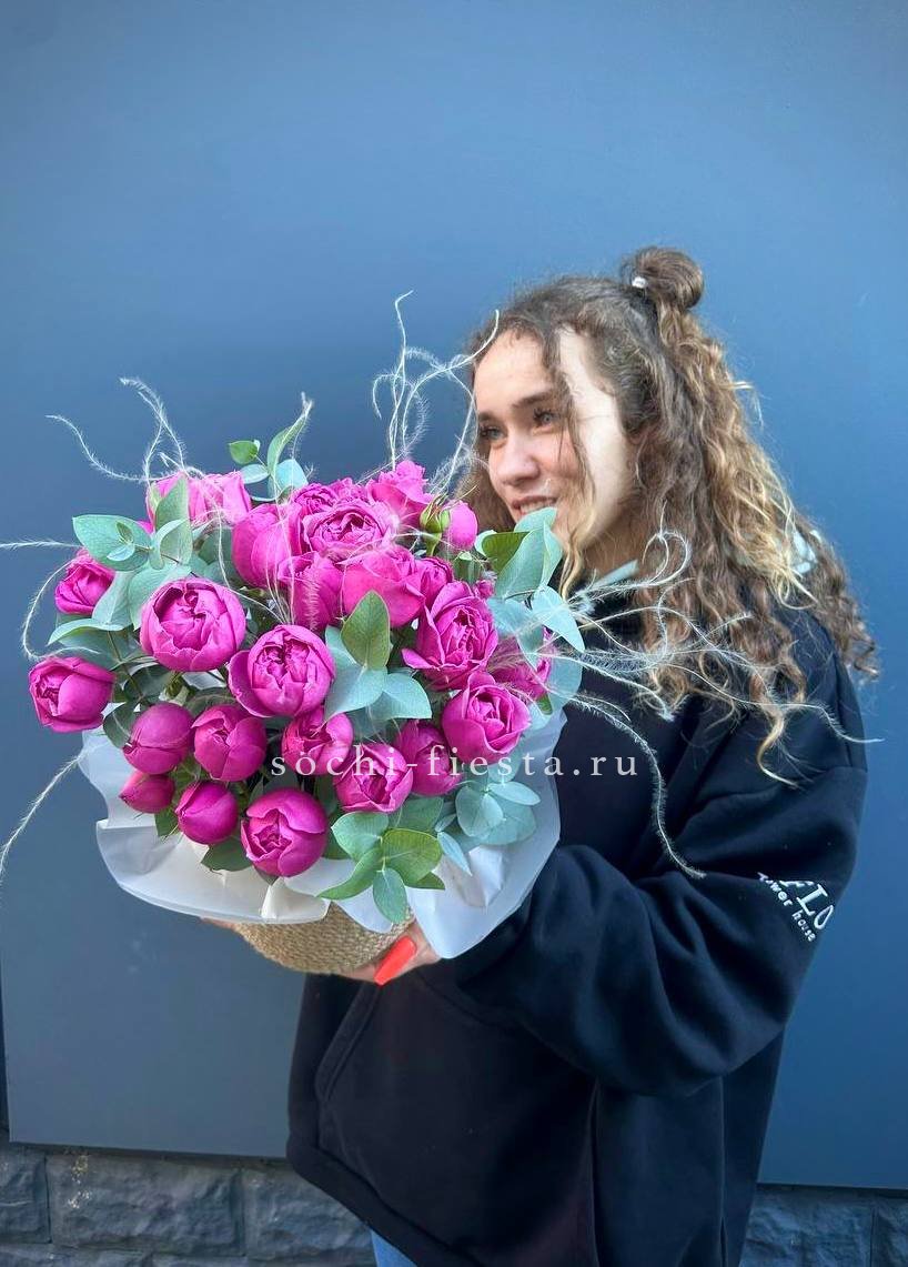 Для заказа товара "Пионовидные розы в джутовом кашпо " с доставкой в Екатеринбурге нажмите в корзину