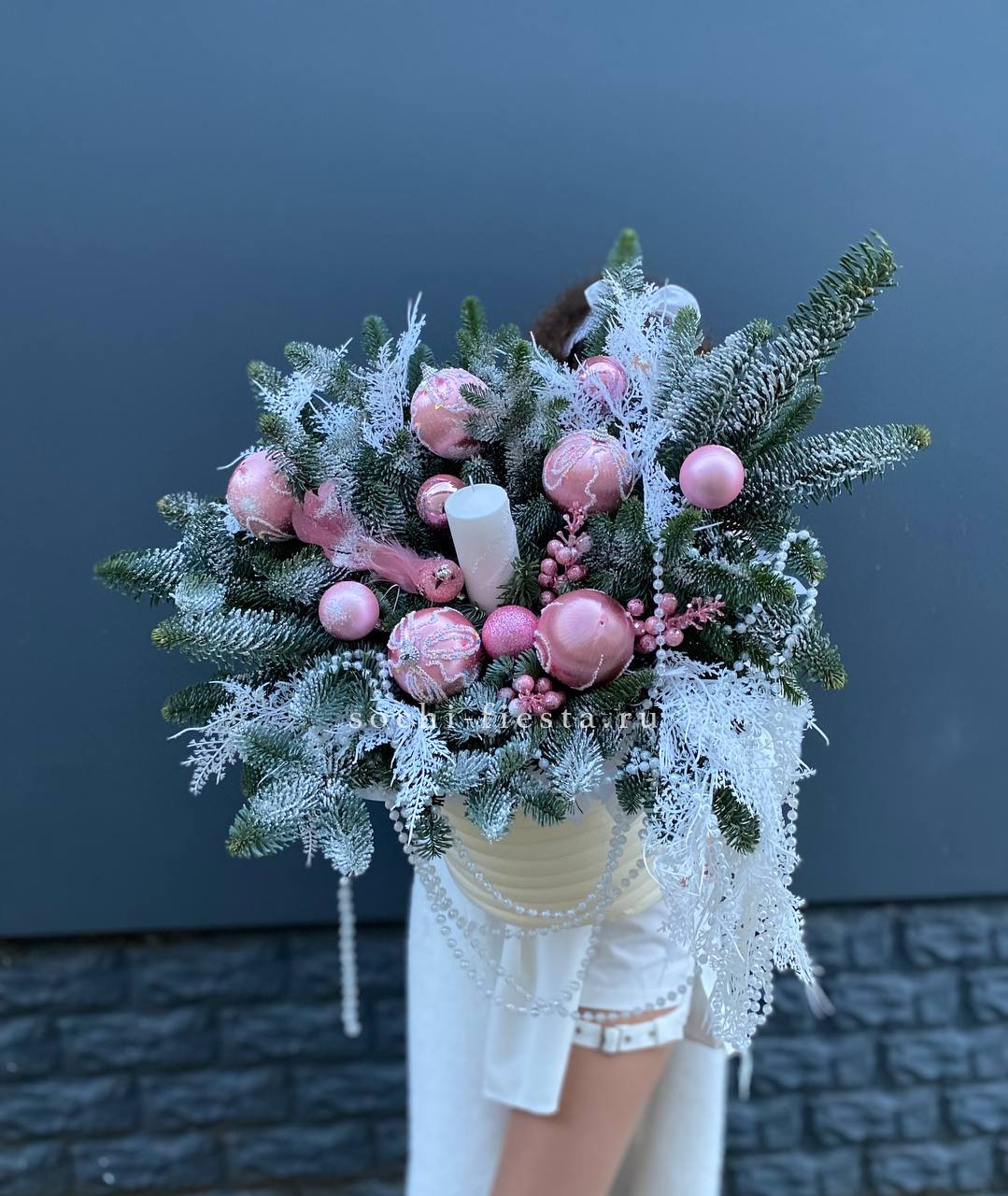 нобилис, цилиндр, оазис, свечи, новогодние игрушки, декор ВНИМАНИЕ! Готовая композиция (декор) может иметь незначительные внешние отличия от примера на фотографии.