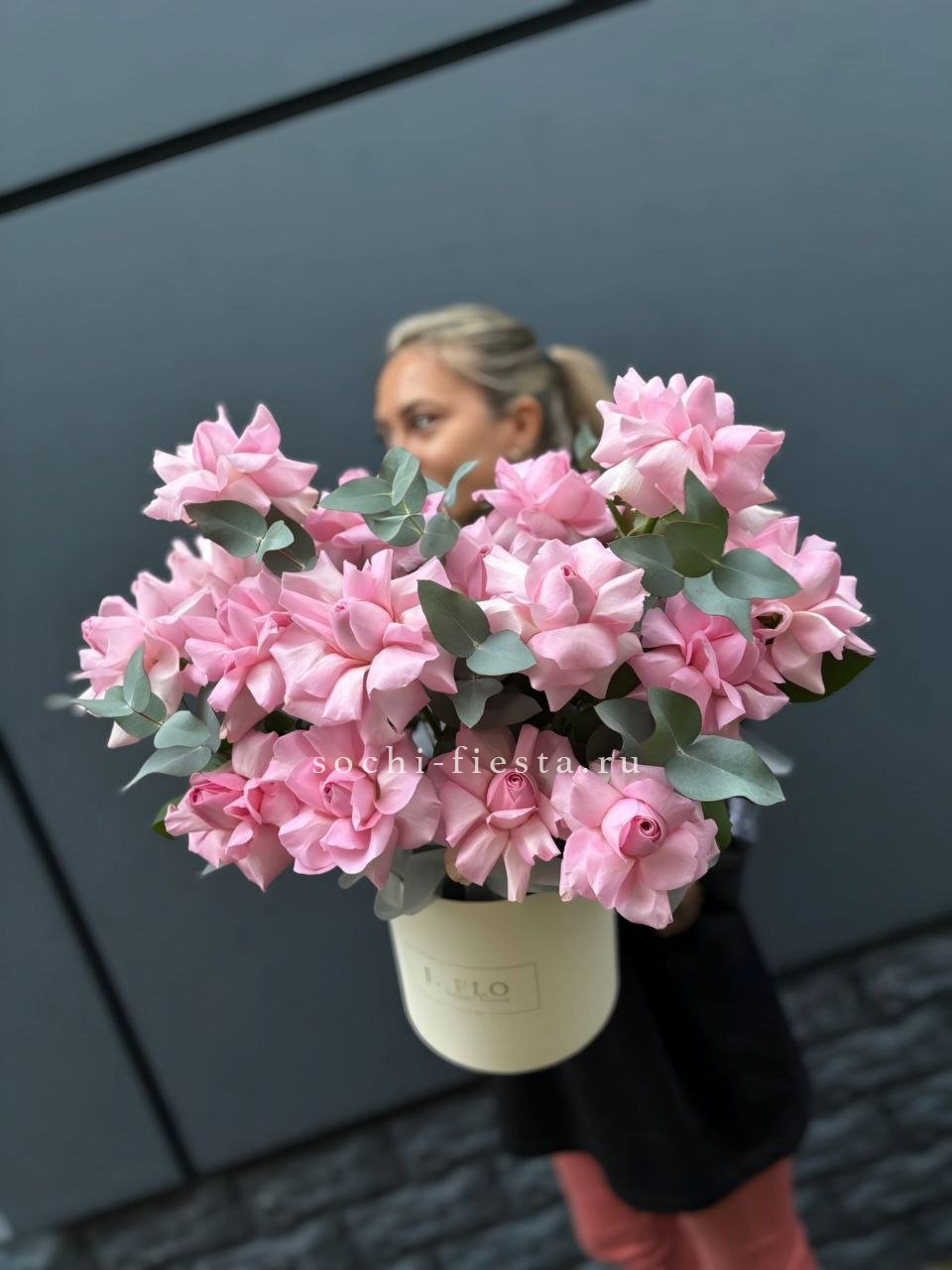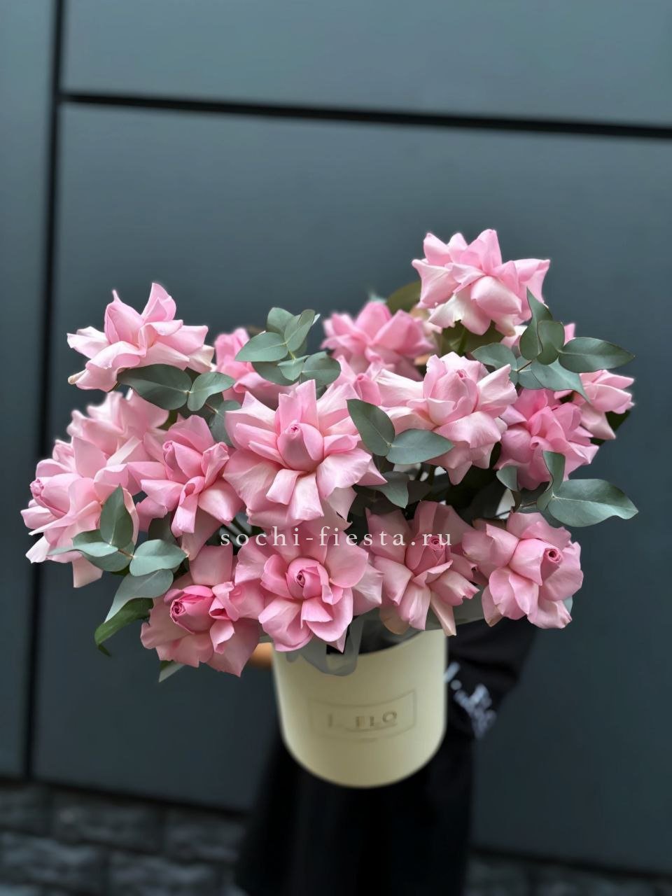 вывернутые розы - 5 шт., эвкалипт - 2шт., лента, авторская упаковка.