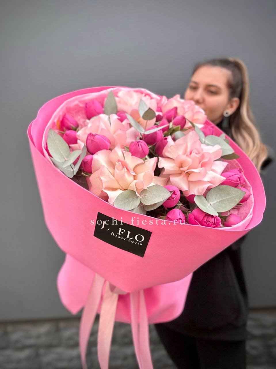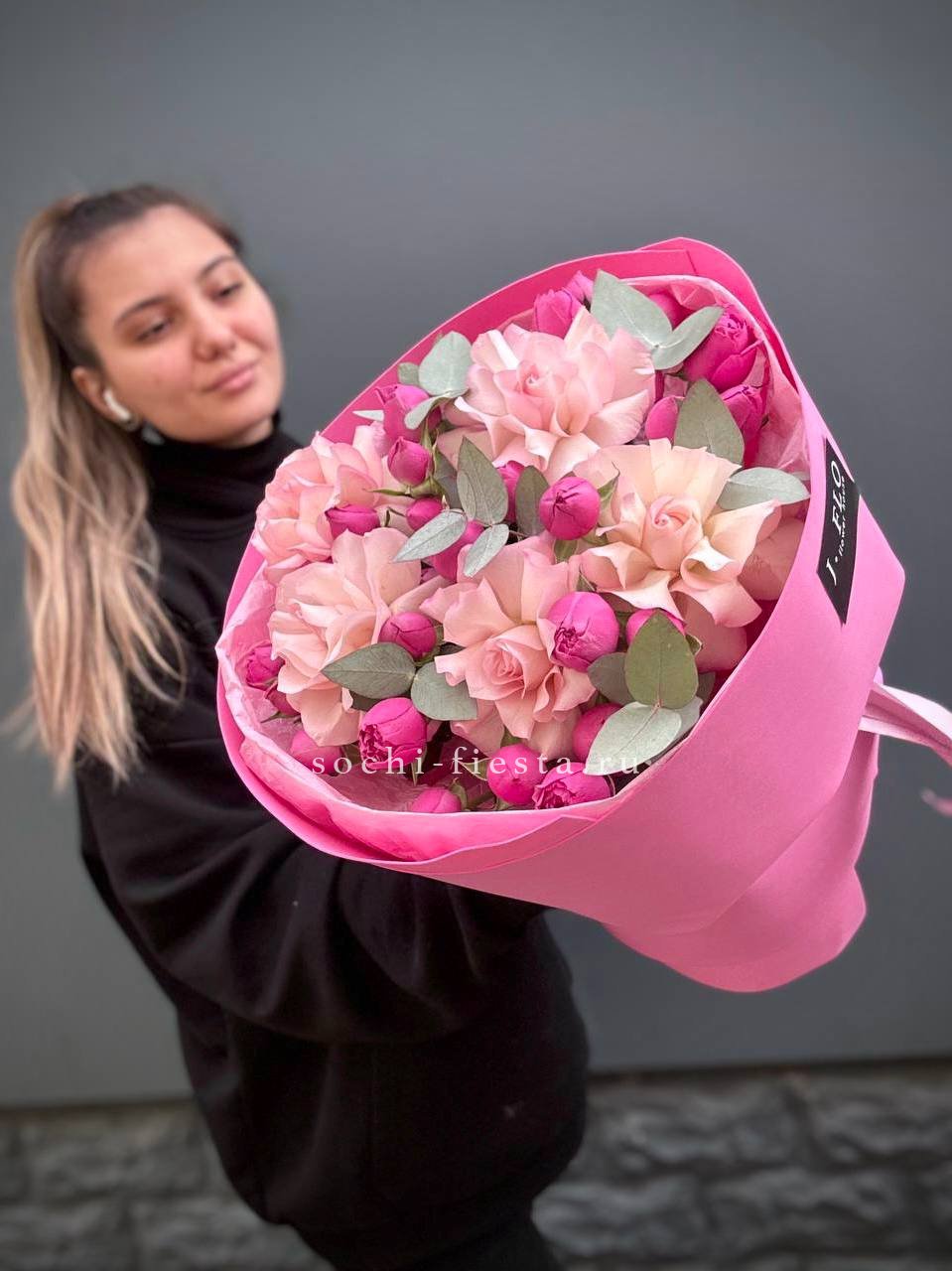 Для заказа товара "Букет французских и пионовидных роз "Ламиносо"" с доставкой в Екатеринбурге нажмите в корзину